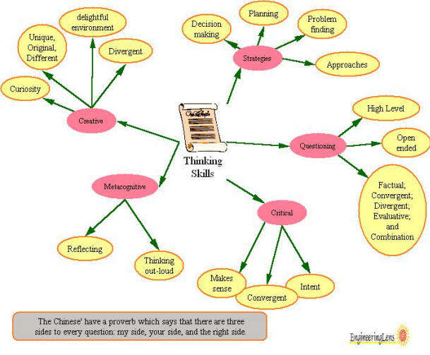 | We as educators, need to infuse thinking skills into this learning process. We like to say that Thinking Skills are one of the tools of engineers. It is important to model for our students the use of thinking skills and provide feedback to them on their use. Creative and critical thinking are key to the finding design challenges and doing a design. Questioning is needed through-out the process as well as developing our curiosity. Meta-cognitive reflection bring in the ability to see what we are doing and change where necessary and using Blooms higher order taxonomy will bring about additional thinking skills. |